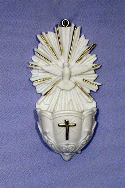Holy Spirit Holy Water Fonts, White with Gold Highlights, 5", 3-Count Value Pack, 24618