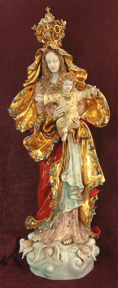 O.L. Queen of Peace and Child, hand-painted and hand-crafted ceramic, 38". Made in Italy.