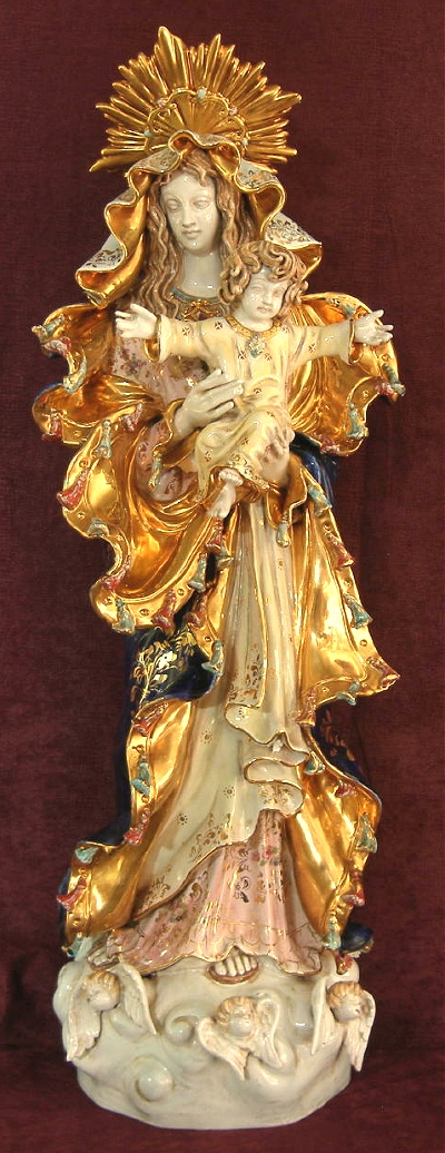 O.L. Queen of Peace with Child and Halo, hand-painted and hand-crafted ceramic, 36". Made in Italy.