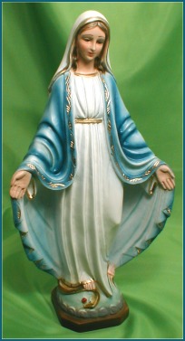 This Our Lady of Grace Statue is beautifully hand-painted. It is made of fine alabaster and is measures about 12" tall. Made in Italy.