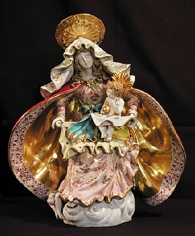 Home > Statues > Mary Statues > Seated Madonna & Child in hand-painted and hand-crafted ceramic, 18". Made in Italy., 97444
