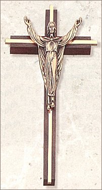 10" Inlay Risen Christ Cross - Walnut, Gold and Bronze
