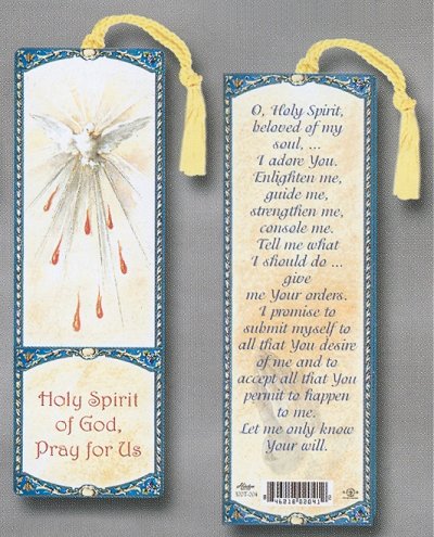 This nice laminated Keepsake Bookmark features the image on the front, prayer on the back, and measures about 2 1/4" x 6".