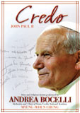 This emotional film portrays highlights of the pontificate of John Paul II, his spiritual legacy, and numerous scenes and moments of his meetings & interactions with various dignitaries, powerful politicians and leaders, as well as ordinary people from around the world. Running throughout the whole film is the unique, beautiful voice of Andrea Bocelli, and songs from his best-selling album, "Sacred Arias". 65 min.