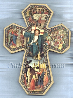 This Beautiful Cross of Miracles features gold embossed images of Christ's miracles. It is made of wood and measures about 8.5" x 6". It is made in Italy.