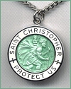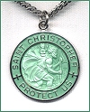 St. Christopher Medal - Green in Green Enamel - 3/4"