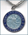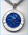 St. Christopher Medal - Blue in Blue Enamel - 1"