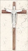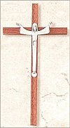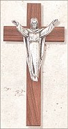 Walnut & Nickle Crucifix w/ Silver on Brass 8 In.