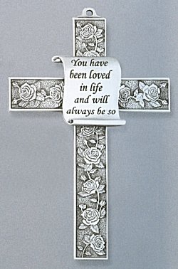 This attractive Memorial Cross is made of fine Pewter, measures about 5" tall and has the prayer: "You have been loved in life and will always be so".