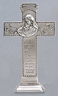 "The Lord bless you and keep you; His face shine upon you, and be gracious to you. Numbers 6:24.25" This beautiful hand-crafted cross is made of solid fine pewter and measures about 6" tall.