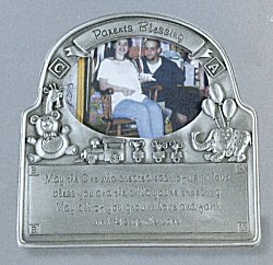 Hand-crafted of solid fine pewter, measures about 4-3/4" x 4-1/2" and includes the prayer: "May the One who created each of us in love bless you and the child you're expecting. May all of you grow in love and faith with His gentle care."