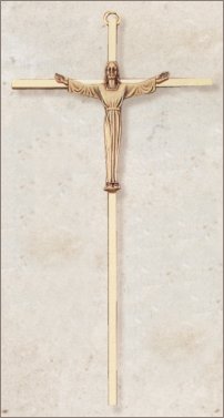 8" Walnut, Gold Inlay and Bronze Risen Christ Cross -