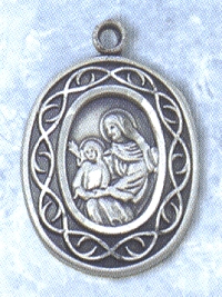 This attractive St. Anne medal is made of fine Sterling Silver, measures about 7/8" tall and comes with an 18" stainless chain.