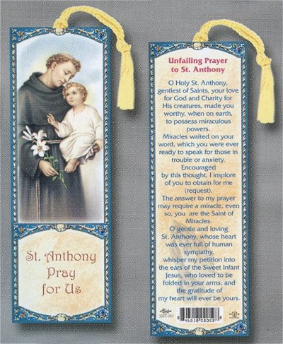 This nice laminated Keepsake Bookmark features the image on the front, prayer on the back, and measures about 2 1/4" x 6".