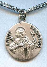 This nice Sterling St. Christine Medal measure about 11/16" and comes with an 18" stainless steel chain.