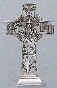 This beautiful hand-crafted cross is made of solid fine pewter and measures about 6" tall.