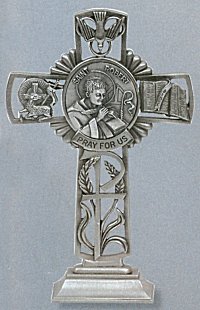 This beautiful hand-crafted cross is made of solid fine pewter and measures about 6" tall.